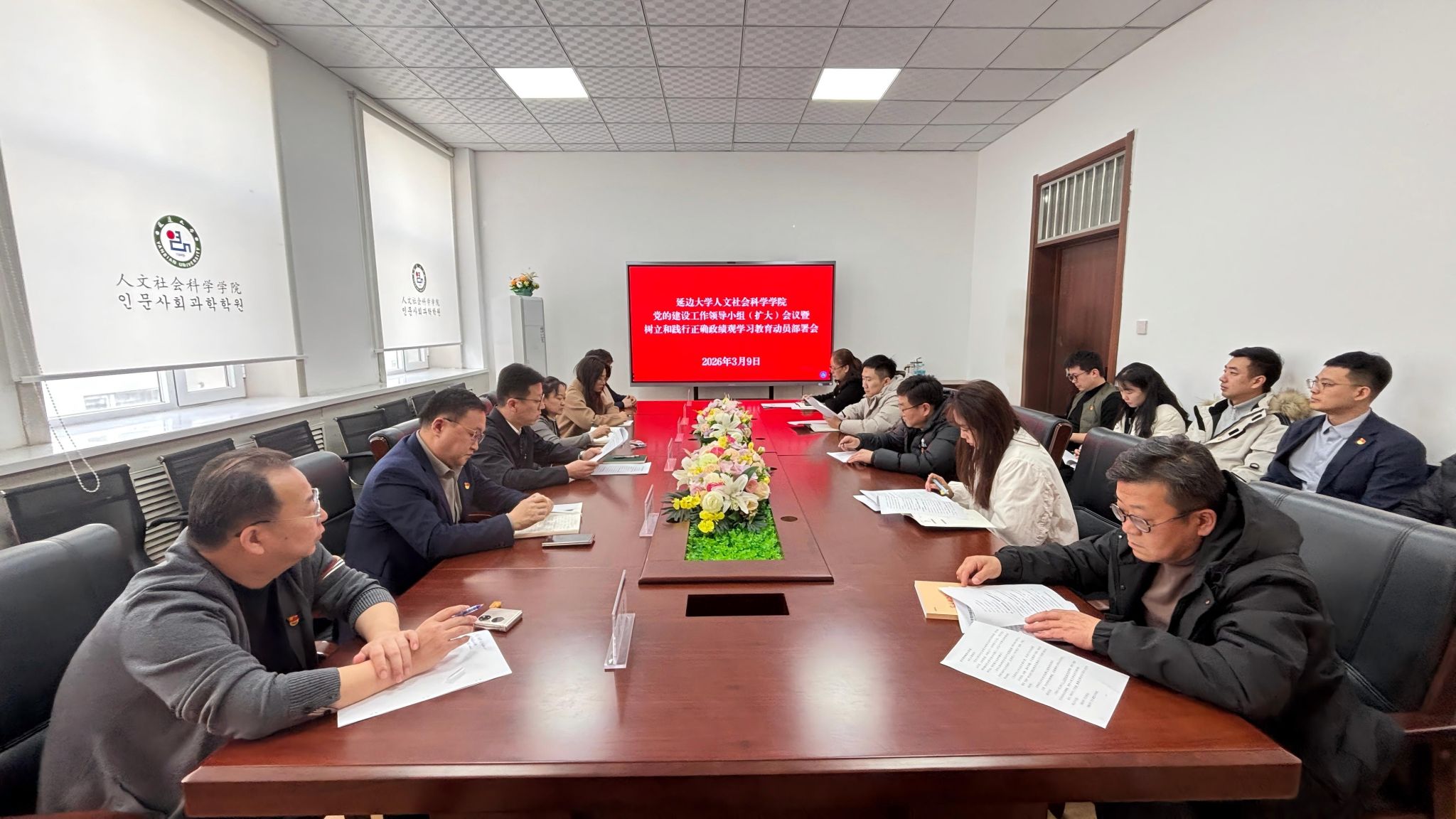 3月9日下午,延边大学人文社会科学学院在学院218会议室召开党的建设工作领导小组(扩大)会议,开展树立和践行正确政绩观学习教育。学班子成员出席会议。学院党委书记孙笑言主持会议并讲话。