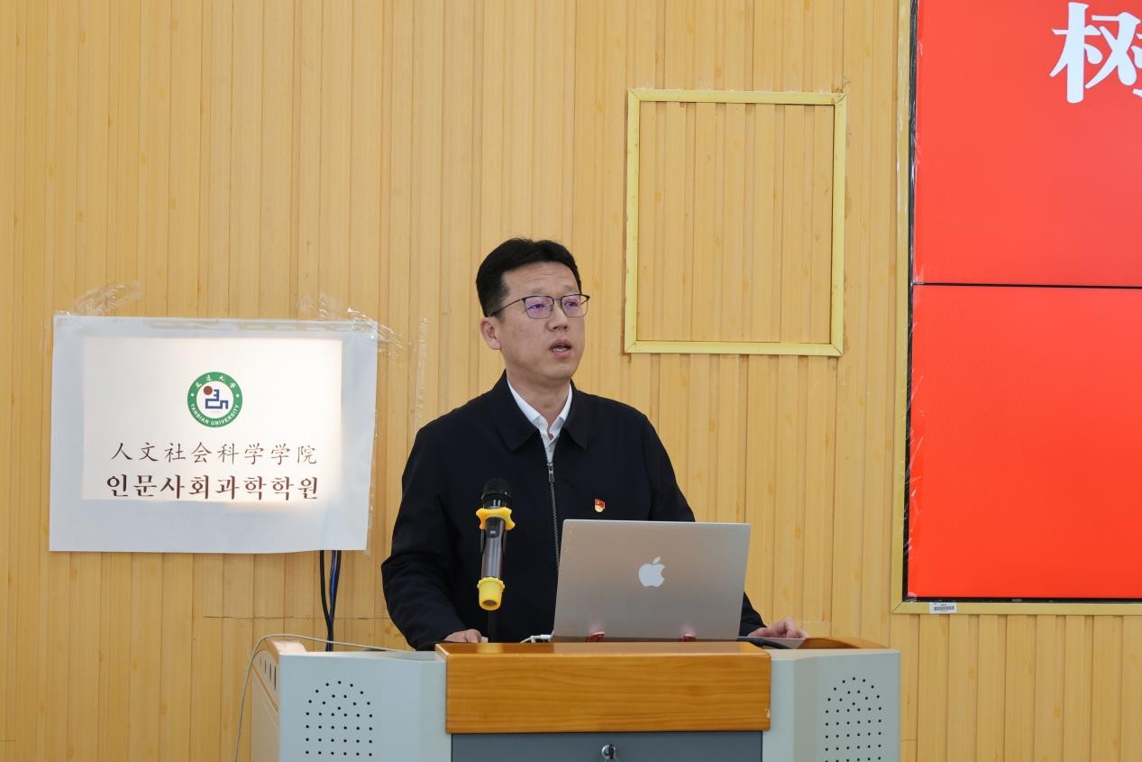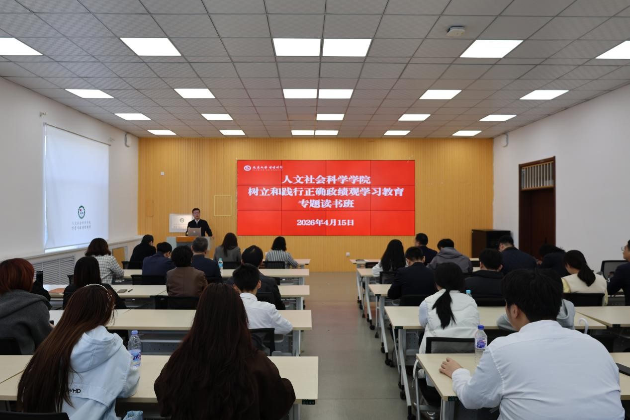 4月15日,人文社会科学学院在学院301教室举办树立和践行正确政绩观学习教育第二次专题读书班。学院领导班子成员出席读书班,党委书记孙笑言主持并讲话。