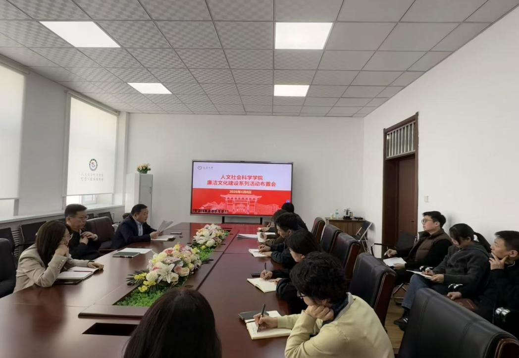 为推动学院廉洁文化建设走深走实,营造风清气正的育人环境,2026年4月8日,延边大学人文社会科学学院在学院218会议室召开廉洁文化建设布置会。学院党委书记孙笑言、党委副书记朴龙国、副院长佟波、各专业书记、主任及学工办全体辅导员参加会议。