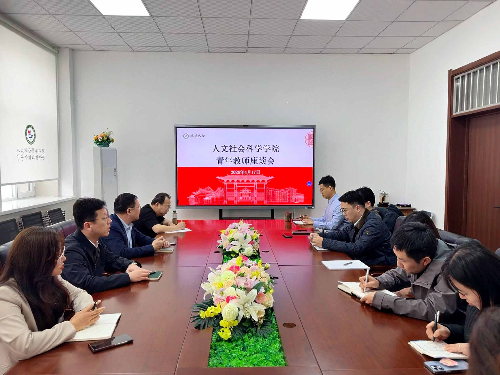 4月17日下午,为深入开展树立和践行正确政绩观学习教育,延边大学人文社会科学学院召开青年教师座谈会,广泛听取青年教师意见建议,凝聚学院高质量发展共识。学院党委书记孙笑言主持会议并讲话。学院党委副书记朴龙国,副院长佟波、高承龙及学院青年教师代表参加会议。