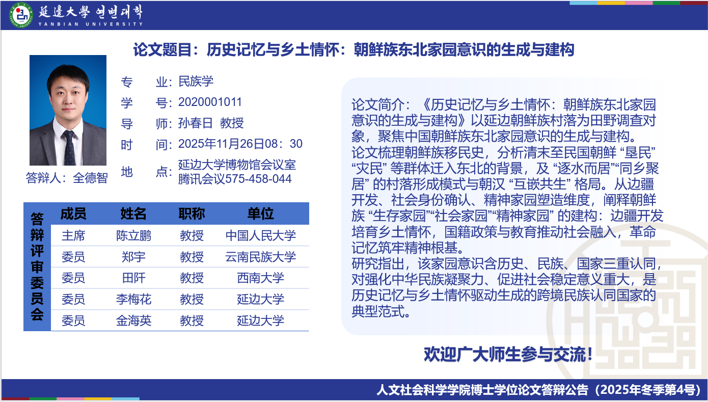 人文社会科学学院博士学位论文答辩公告(2025年冬季第4号)